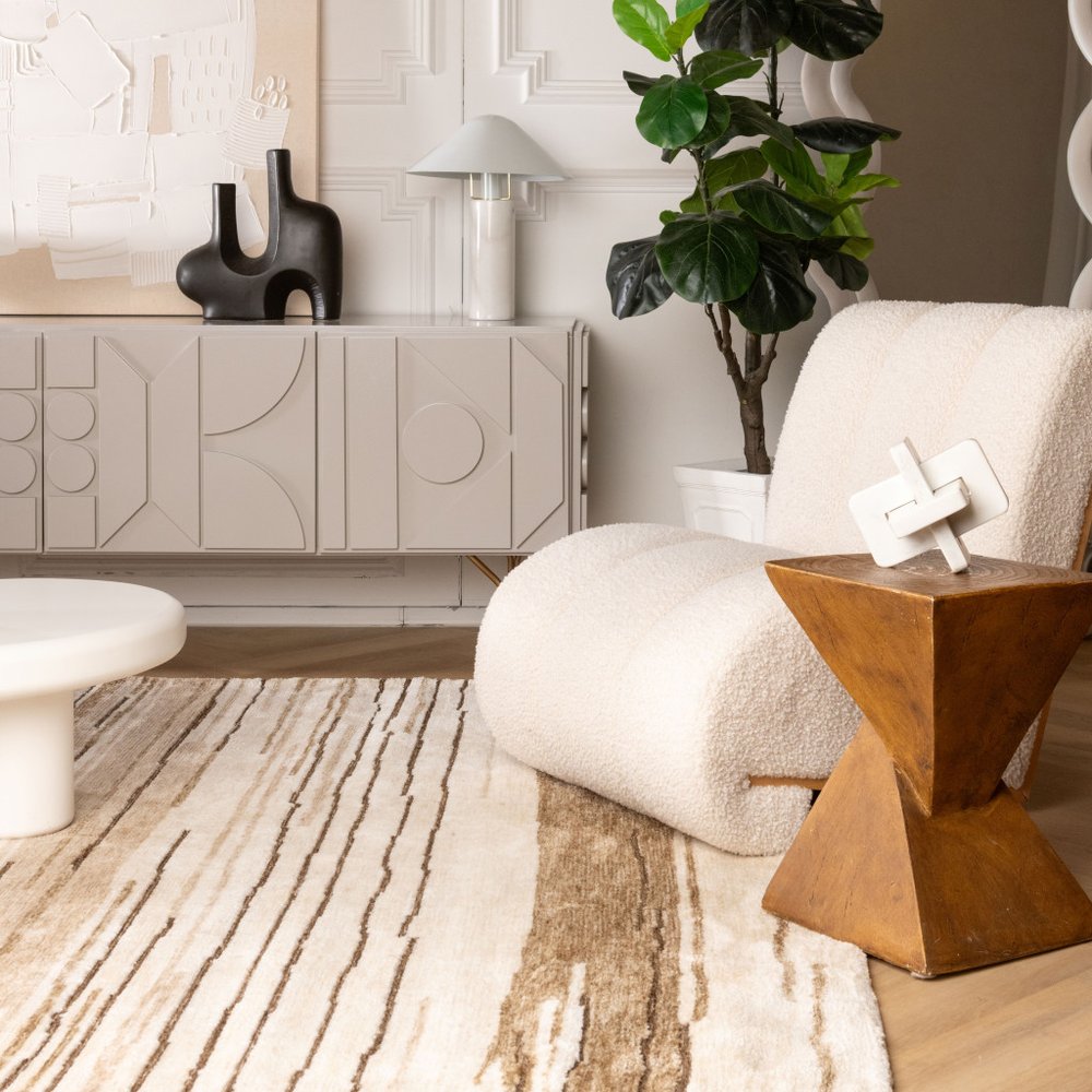 This 5-foot x 8-foot beige and brown abstract power loom distressed non skid area rug, is a great way to add warmth to a room. This rectangle shaped rug features a abstract design in beige and brown to give it visual interest. A classic shape marries with good looking design for your space ideal for spaces with kids and pets, this rug is stain resistant to help repel stains and spilled liquids. 63-inch H x 91-inch W x 0.4-inch D