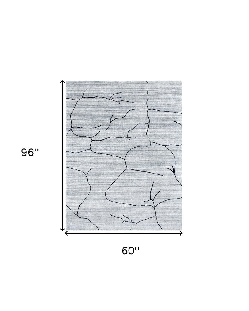 5' X 8' Gray and Black Abstract Hand Loomed Area Rug