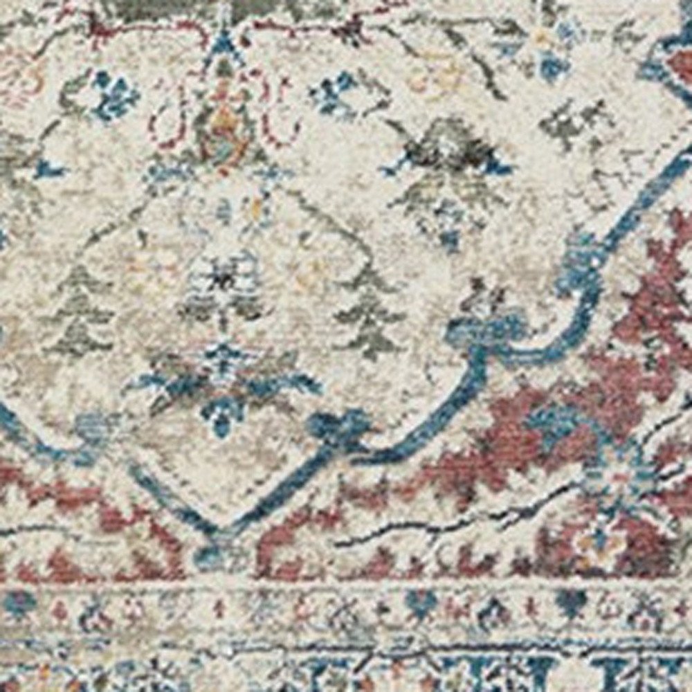 Set an inviting tone in your space with this 5-foot x 8-foot ivory blue and gray oriental distressed area rug with fringe. This rectangle shaped rug features a oriental design in ivory blue and gray to give it visual interest. A classic shape marries with good looking design for your space ideal for spaces with kids and pets, this rug is stain resistant to help repel stains and spilled liquids. Tassel ends bring a timeless and fashionable look to your interior. Place this area rug against a hardwood or tile floor and it will enliven your living space with style and sophistication. 63-inch H x 85-inch W x 0.39-inch D