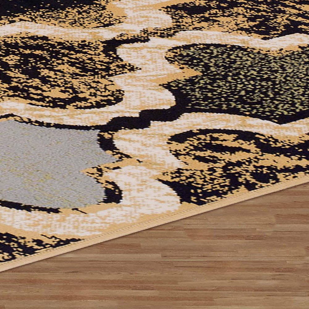 Set an inviting tone in your space with this 5-foot x 8-foot black and ivory quatrefoil distressed area rug. Ideal for spaces with kids and pets, this rug is stain resistant to help repel dirt and spilled liquids. Built to last, this rug crafted from polypropylene fibers is known for its durability and long lasting appeal. Rugs are a great way to showcase your style, hide imperfections, warm your home and reduce noise. This larger sized, transitional styled rug is ready to create a focal point or statement piece in your room. 60.00-inch h x 96.00-inch w x 0.31-inch d.