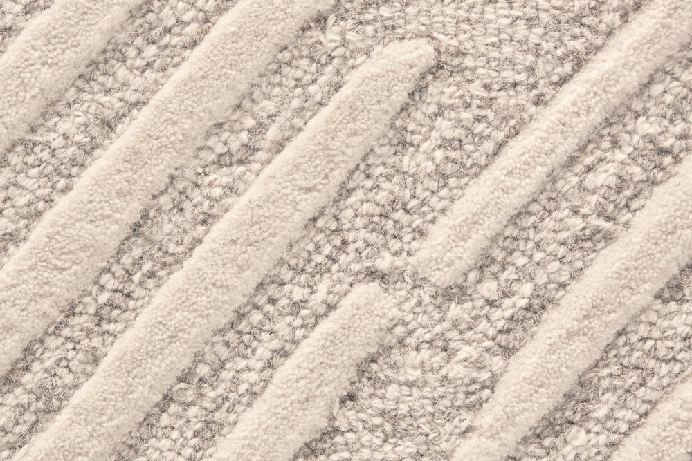 Add some artistry to your room with this 5' x 8' tan and ivory wool geometric tufted handmade stain resistant area rug. This rectangle shaped rug features a geometric design in tan and ivory to give it visual interest. A classic shape marries with good looking design for your space Ideal for spaces with kids and pets, this rug is stain resistant to help repel stains and spilled liquids. Place this area rug against a hardwood or tile floor and it will enliven your living space with style and sophistication. 0.31" H x 60" W x 96" D
