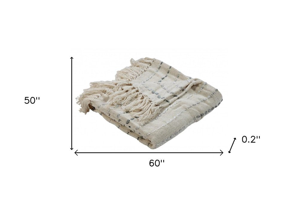 This 50-inch x 60-inch cream kantha cotton striped throw blanket with embroidery is a stylish addition to any sofa. Featuring beautiful embroidery, this embellished throw is of the highest quality and design. Made from cotton this blanket will make a great addition to any room it's added to. Layering your furnishings with a decorative throw has the ability to awaken a tired living room or elevate the design of your bedroom simply by providing elements of color and texture that weren't there before. This cozy throw blanket is sure to become your go-to couch companion. 60-inch H x 50-inch W x 0.2-inch D