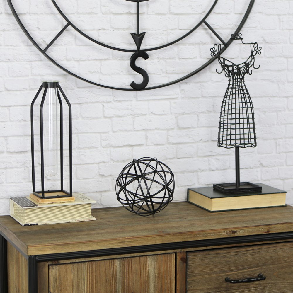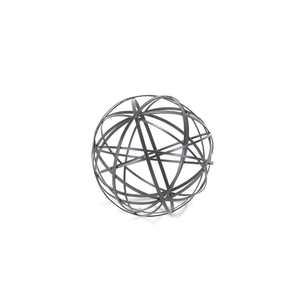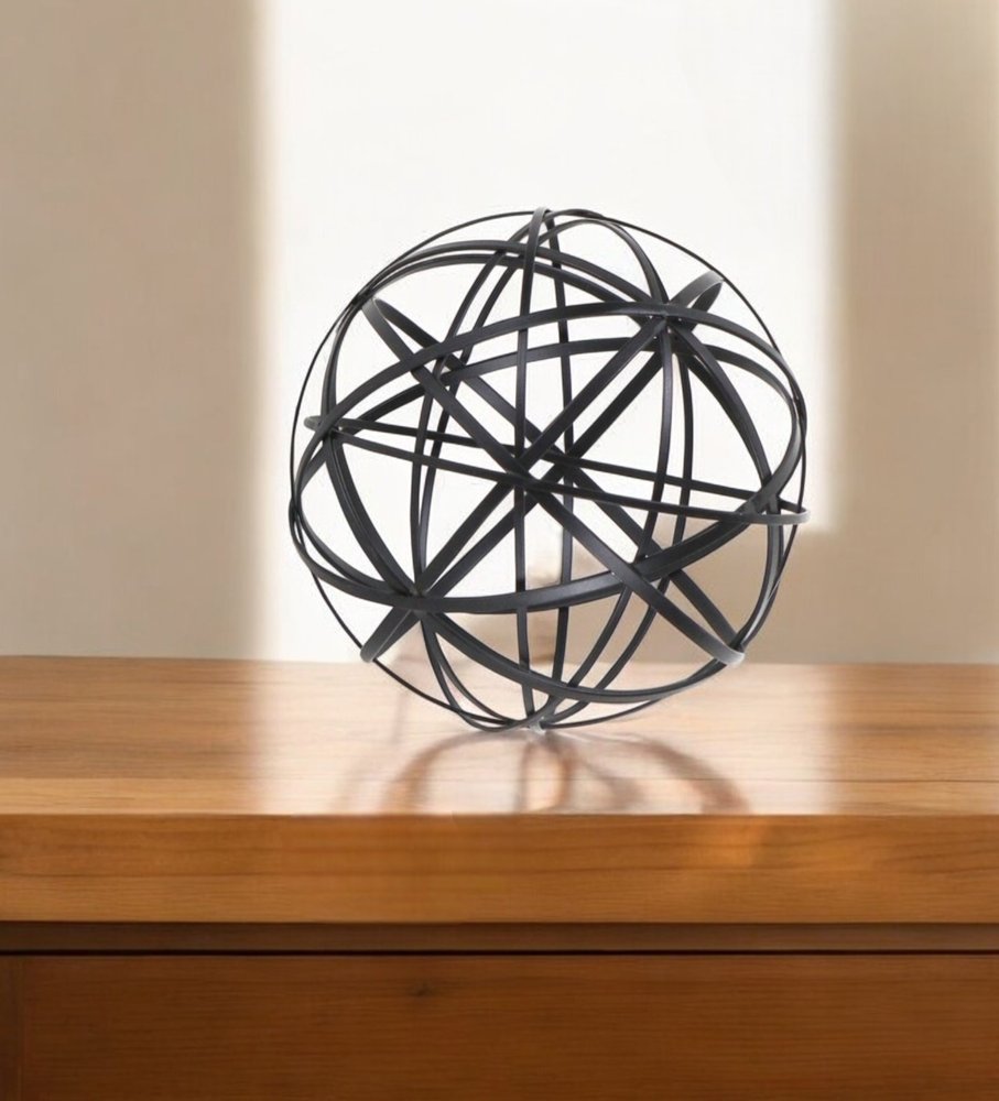 The perfect way to add a touch of contemporary design to your home, this Petite Black Metal Wire Ball Decorative Sculpture is made from solid metal and is finished to black color. The ball shape is made of intricate metal wires in varying sizes which intersect and create new smaller shapes adding a nice depth to the overall look. Use this decor piece on its own anywhere in your home or group it up with similar pieces you have in your bookshelf, your coffee table, or even on your entryway table. 6.25" H x 6.25" W x 6.25" D
