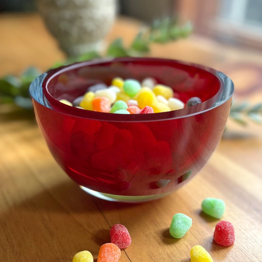 6" Red Mouth Blown Crystal Thick Walled Bowl