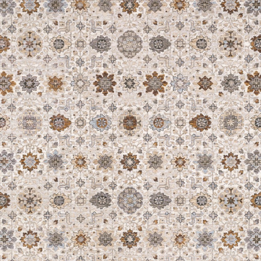 Set an inviting tone in your space with this 6' x 9' ivory and gold oriental power loom stain resistant area rug with fringe. This rectangle shaped rug features a oriental design in ivory and gold to give it visual interest. A classic shape marries with good looking design for your space Ideal for spaces with kids and pets, this rug is stain resistant to help repel stains and spilled liquids. Tassel ends bring a timeless and fashionable look to your interior. Place this area rug against a hardwood or tile floor and it will enliven your living space with style and sophistication. 0.23" H x 78.74" W x 116.54" D