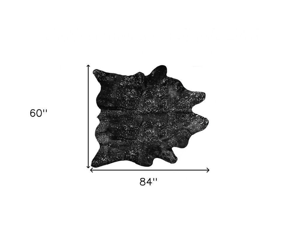 5' X 7' Black And Gold Cowhide Cowhide Print Area Rug