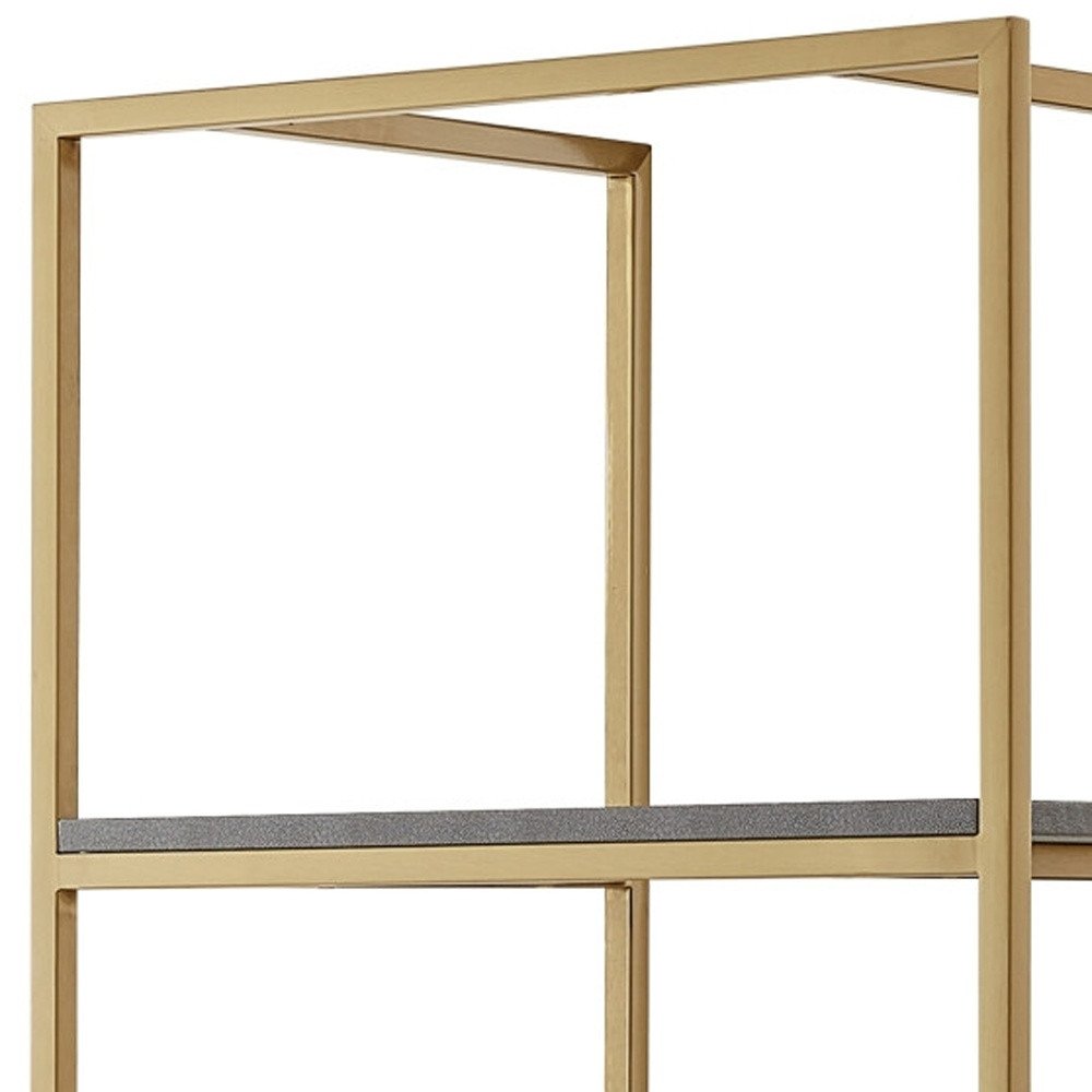 68" Gray Stainless Steel Four Tier Etagere Bookcase with a drawer