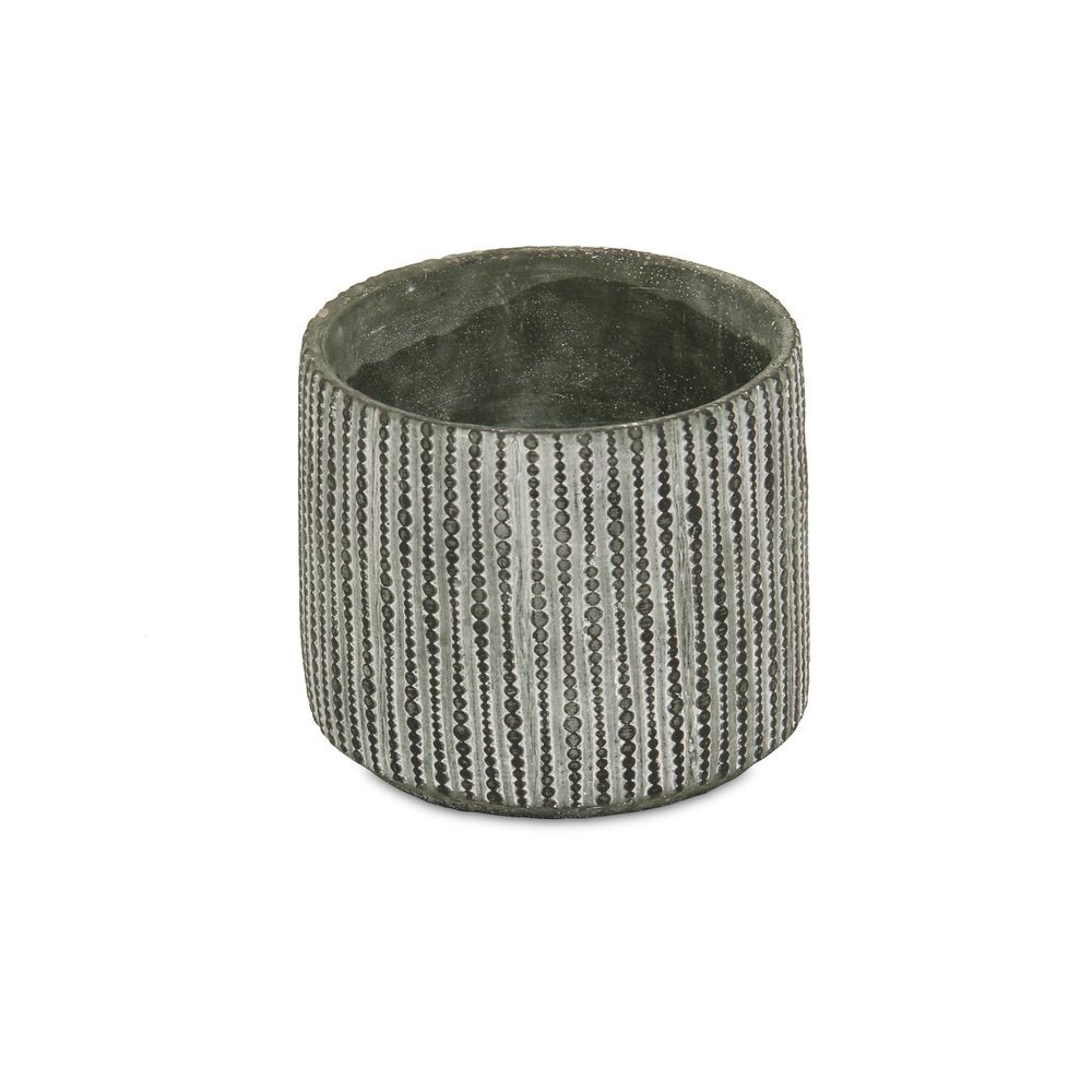 This 7-inch gray dot cement indoor outdoor round pot planter is not only practical, but it's also a beautiful addition to your outdoor decor and serves as a perfect way to bring life into any setting. Made of cement with a decorative dot pattern, this planter not only looks good but is built to last. This planter has a classic round shape, which brings an essence of wholeness to your outdoor space. This piece is practically designed to fit most any aesthetic and outdoor space. Add that extra touch of style to your outdoor garden space with this 7-inch gray dot cement indoor outdoor round pot planter. 5.75-inch H x 6.75-inch W x 6.75-inch D