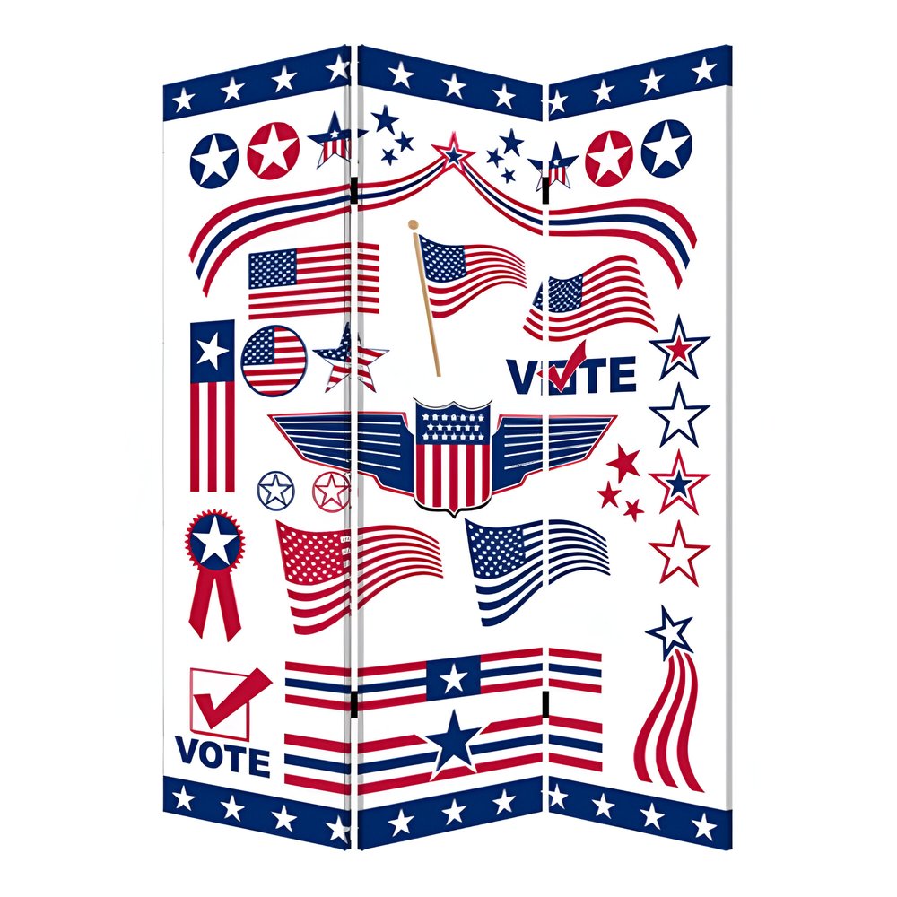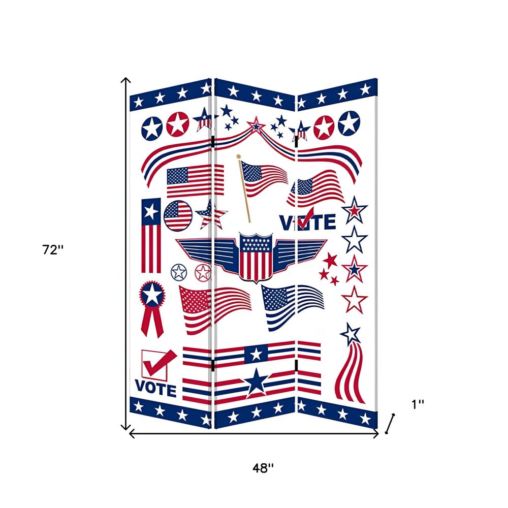 72" Blue and White Canvas Folding Three Panel Screen Room Divider