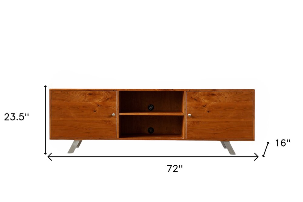 72" Brown Solid Wood Enclosed and Open Storage TV Stand