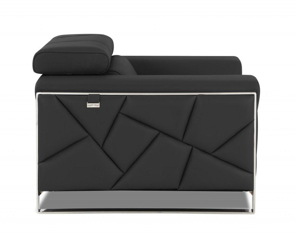 Superior construction from fabulously soft and high grade leather gives this 75-inch gray and silver italian leather loveseat a leg up on the competition. The high grade premium leather used makes your lounging luxuriously comfortable and adds an elegant appeal to your space. Square arms offer a comfy place to rest and give this piece some interest and shape. Silver metal legs effortlessly elevate the room and add a touch of contemporary design. A great showpiece for your room, this sofa is a must have. 35-inch H x 75-inch W x 43-inch D