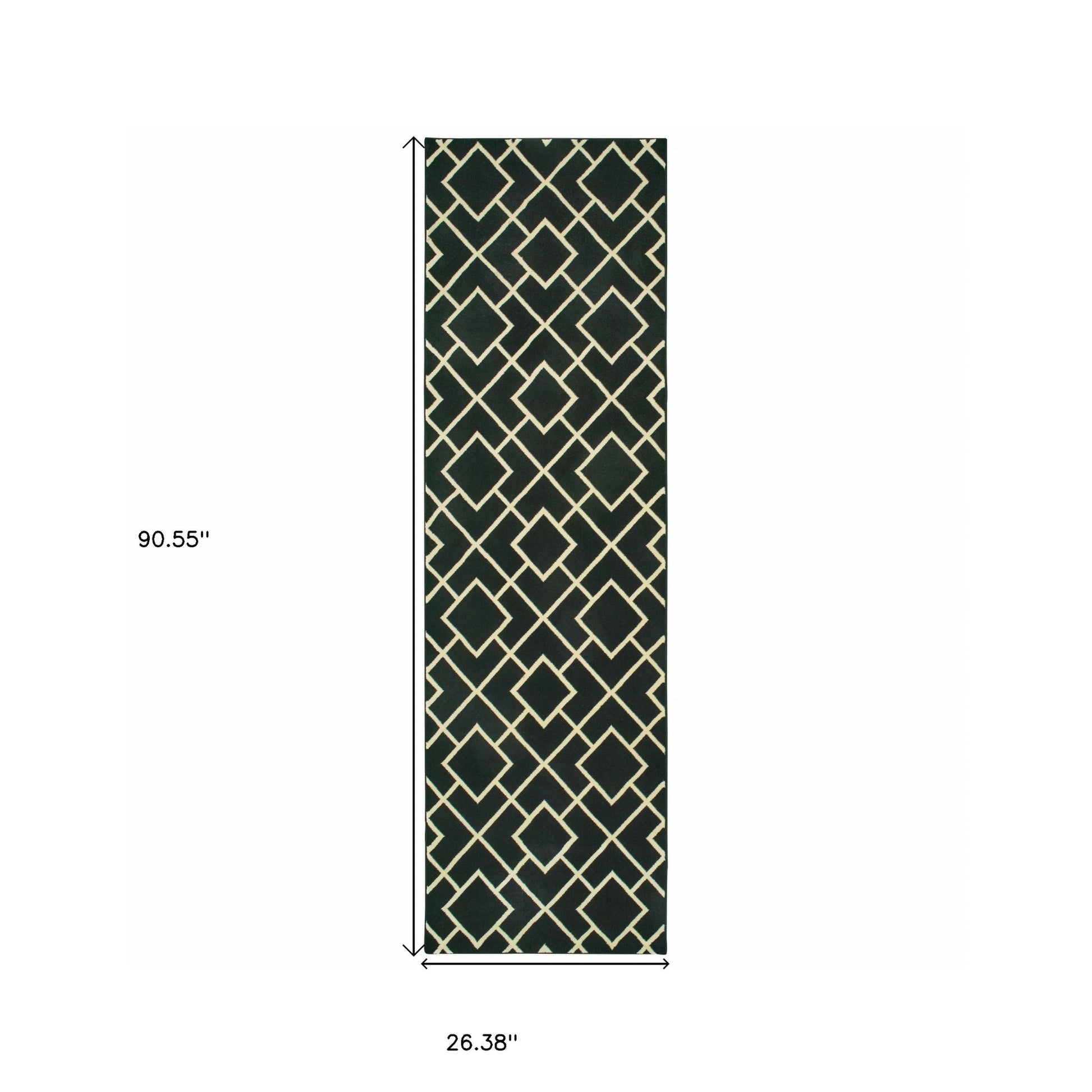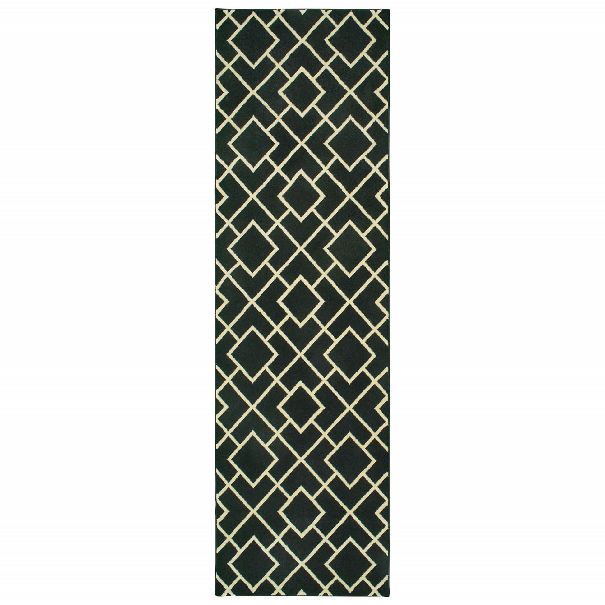 Add great coloration and comfortable texture to your space with this 10-foot x 13-foot black and ivory diamond area rug. Ideal for spaces with kids and pets, this rug is stain resistant to help repel dirt and spilled liquids. Built to last, this rug crafted from polypropylene fibers is known for its durability and long lasting appeal. Rugs are a great way to showcase your style, hide imperfections, warm your home and reduce noise. This larger sized, casual styled rug is ready to create a focal point or statement piece in your room. 118.11-inch h x 153.54-inch w x 0.32-inch d.