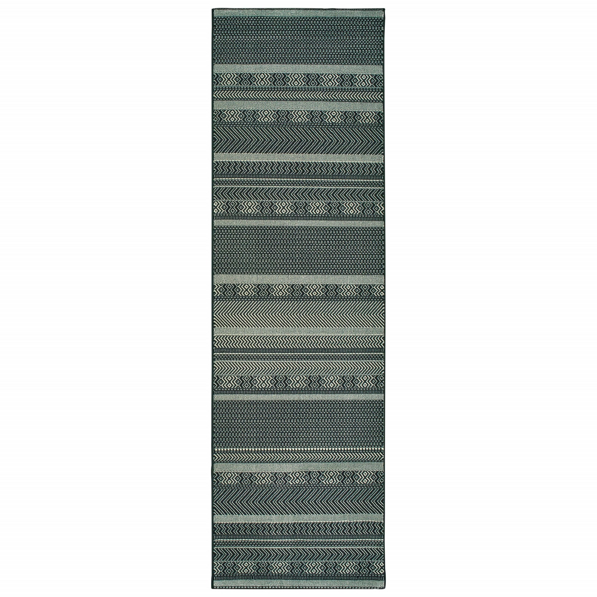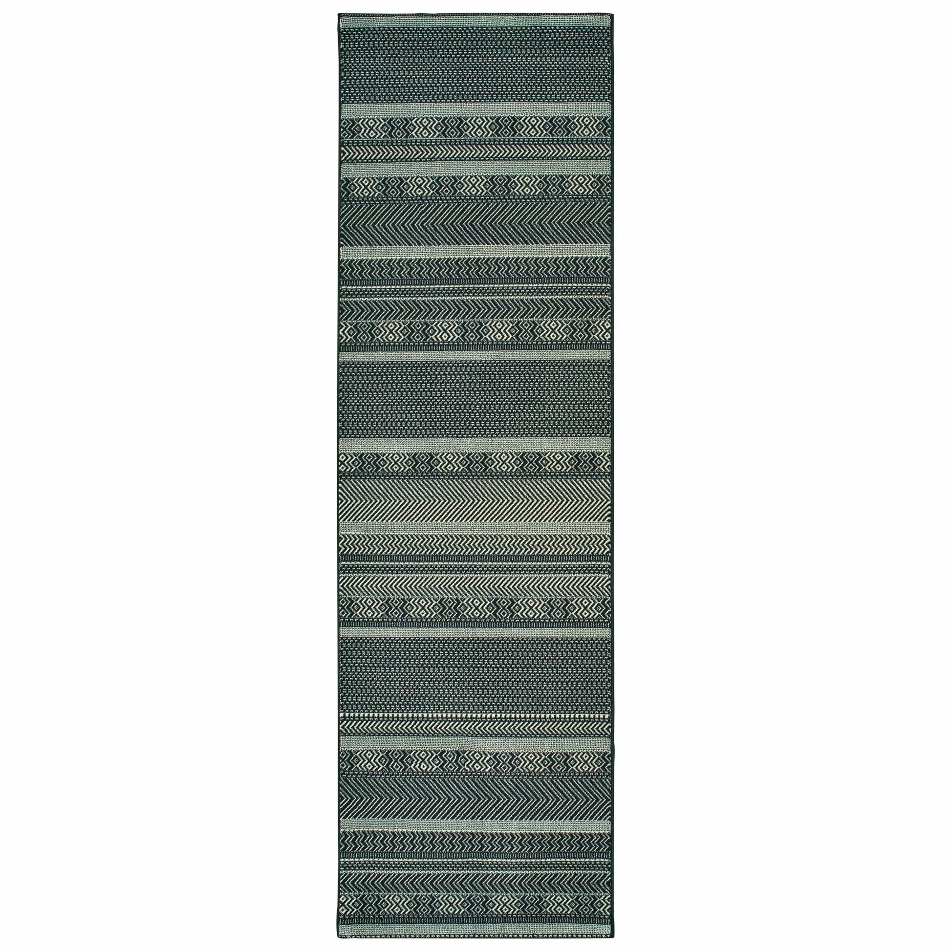 Add great coloration and comfortable texture to your space with this 10-foot x 13-foot black and ivory geometric area rug. Ideal for spaces with kids and pets, this rug is stain resistant to help repel dirt and spilled liquids. Built to last, this rug crafted from polypropylene fibers is known for its durability and long lasting appeal. Rugs are a great way to showcase your style, hide imperfections, warm your home and reduce noise. This larger sized, casual styled rug is ready to create a focal point or statement piece in your room. 118.11-inch h x 153.54-inch w x 0.32-inch d.