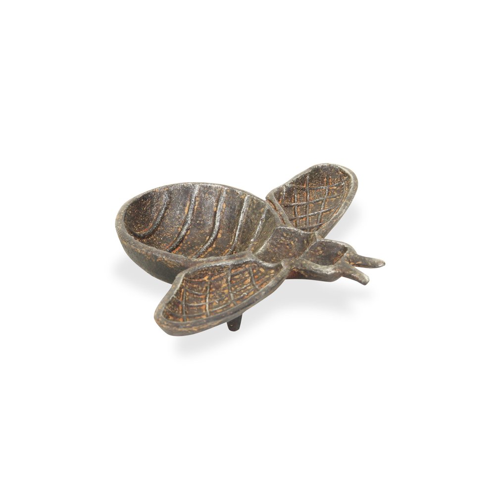 This 8" gray bumble bee metal handmade tray is perfect for serving, storing or displaying your favorites. Made from metal, this durable bumble bee tray is perfect to use as serveware or as a showcase for other objects just as beautiful as it is. Intended for decorative, non-food use only, it's perfect for displaying a collection of candles, perfume, décor, and more. 1.25" H x 8" W x 6.5" D