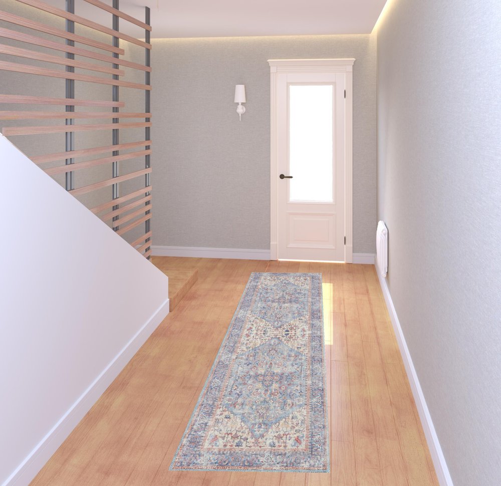 Add some artistry to your room with this 8' gray floral power loom distressed washable runner rug. This runner shaped rug features a floral design in gray to give it visual interest. A classic shape marries with good looking design for your space This superior Turkish rug represents the highest quality and is built to last. Place this area rug against a hardwood or tile floor and it will enliven your living space with style and sophistication. .28" H x 26.00" W x 96.00" D