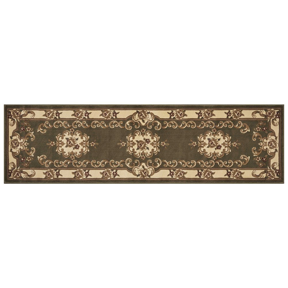 Set an inviting tone in your space with this 8-foot green and ivory floral medallion runner rug. Ideal for spaces with kids and pets, this rug is stain resistant to help repel dirt and spilled liquids. Built to last, this rug crafted from polypropylene fibers is known for its durability and long lasting appeal. Rugs are a great way to showcase your style, hide imperfections, warm your home and reduce noise. This traditional style runner makes a great accent for the hallway, in front of cabinets, in the laundry room, or any other space you need a narrow and long rug. 26.00-inch h x 95.00-inch w x 0.50-inch d.