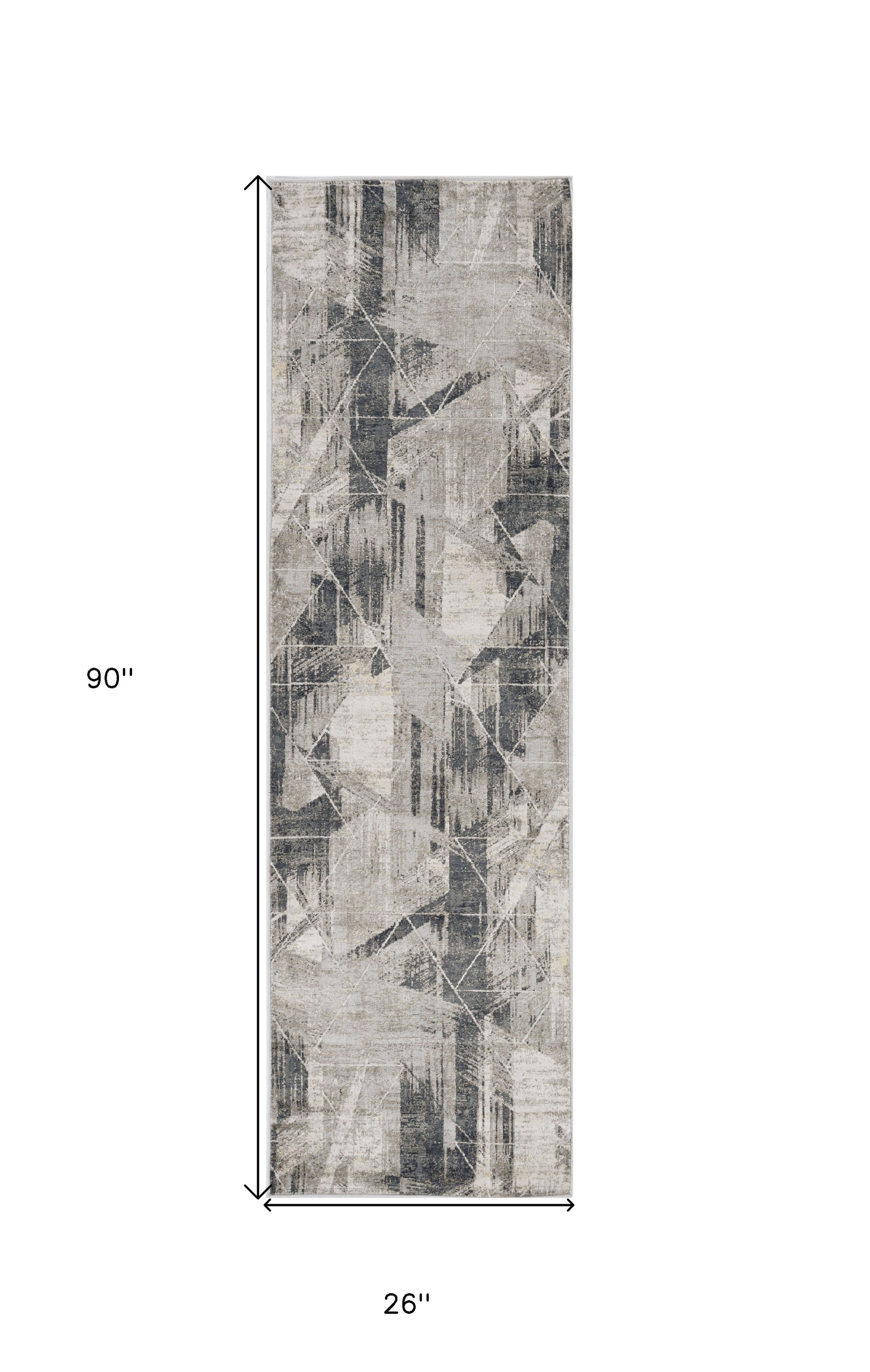 3' X 5' Gray Black And Ivory Abstract Area Rug