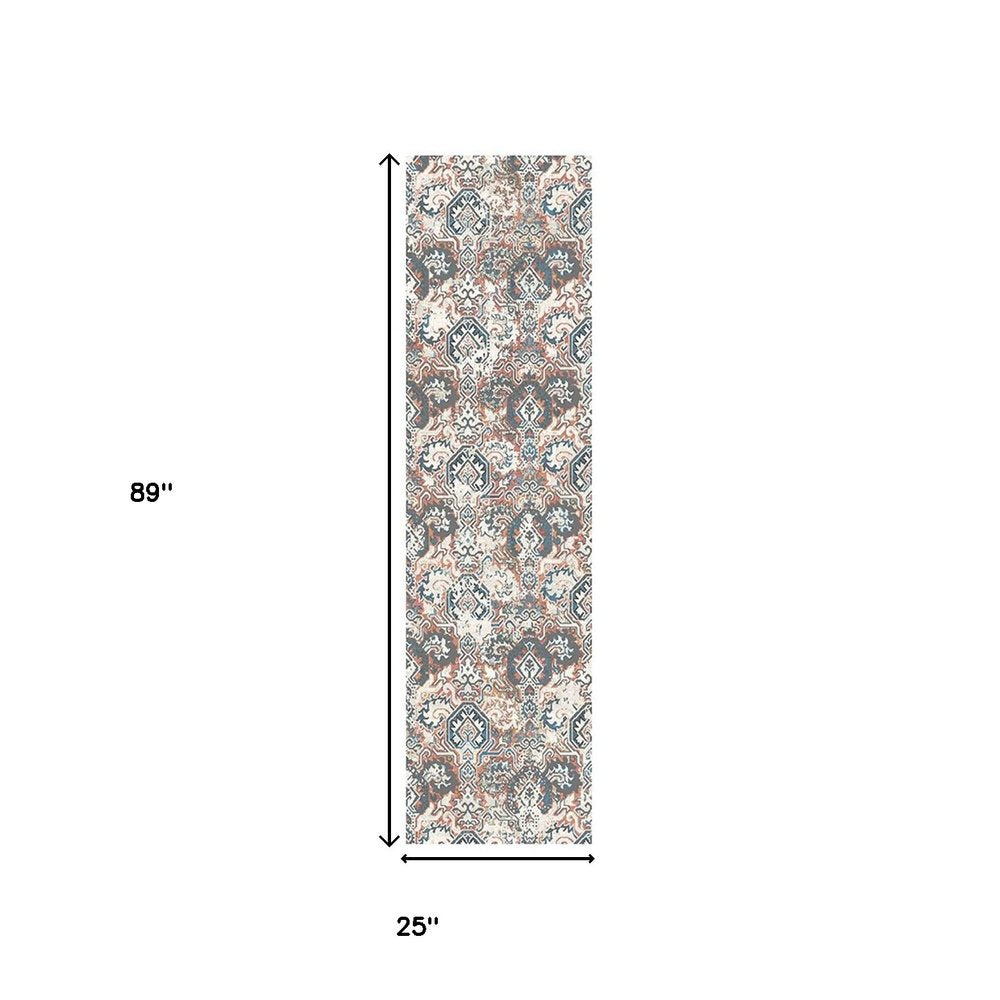 Add some artistry to your room with this 8-foot rust oriental distressed runner rug with fringe. This runner shaped rug features a oriental design in rust to give it visual interest. A classic shape marries with good looking design for your space ideal for spaces with kids and pets, this rug is stain resistant to help repel stains and spilled liquids. Tassel ends bring a timeless and fashionable look to your interior. Area rugs help to give warmth and sense of home to your space. 25-inch H x 89-inch W x 0.39-inch D