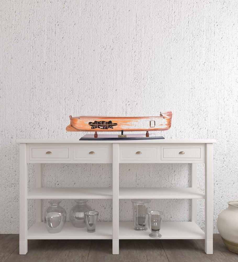 Unique and decorative, this 8" wooden manufactured wood hand painted decorative boat will leave a lasting impression. This wooden colored piece is made from high grade manufactured wood. A perfect decorative addition for anyone who loves a stylish look and feel. Use this piece as bookshelf decor, on your desk, coffee table, or anywhere in your home. 8" H x 33" W x 6" D