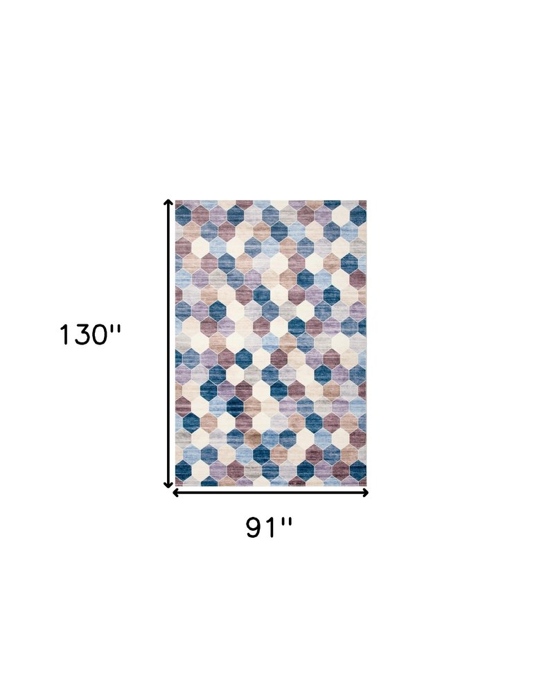 8' X 11' Ivory and Blue Geometric Distressed Area Rug