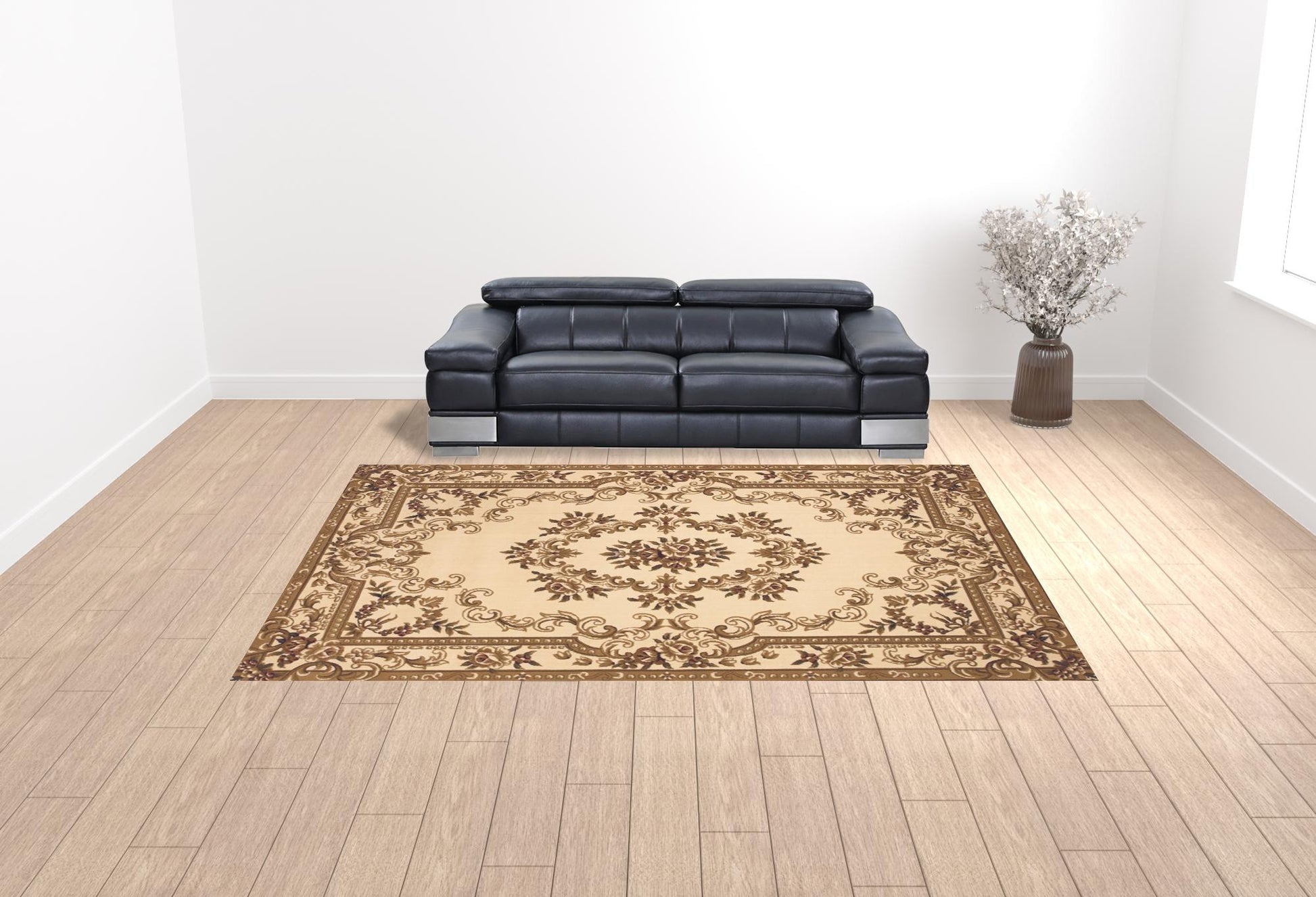 2' X 3' Beige And Brown Floral Medallion Area Rug
