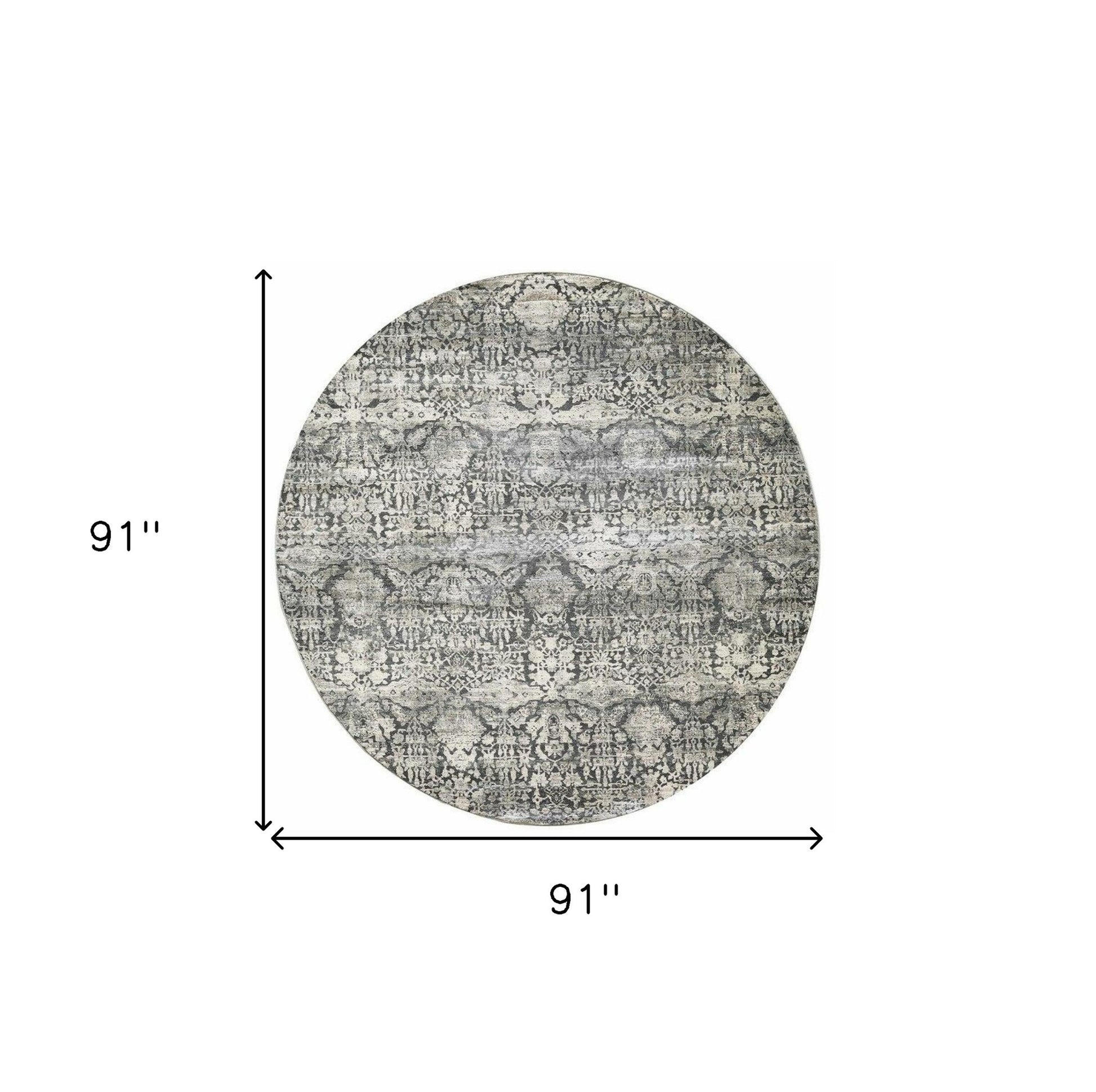 3' X 5' Gray And Ivory Floral Medallion Area Rug