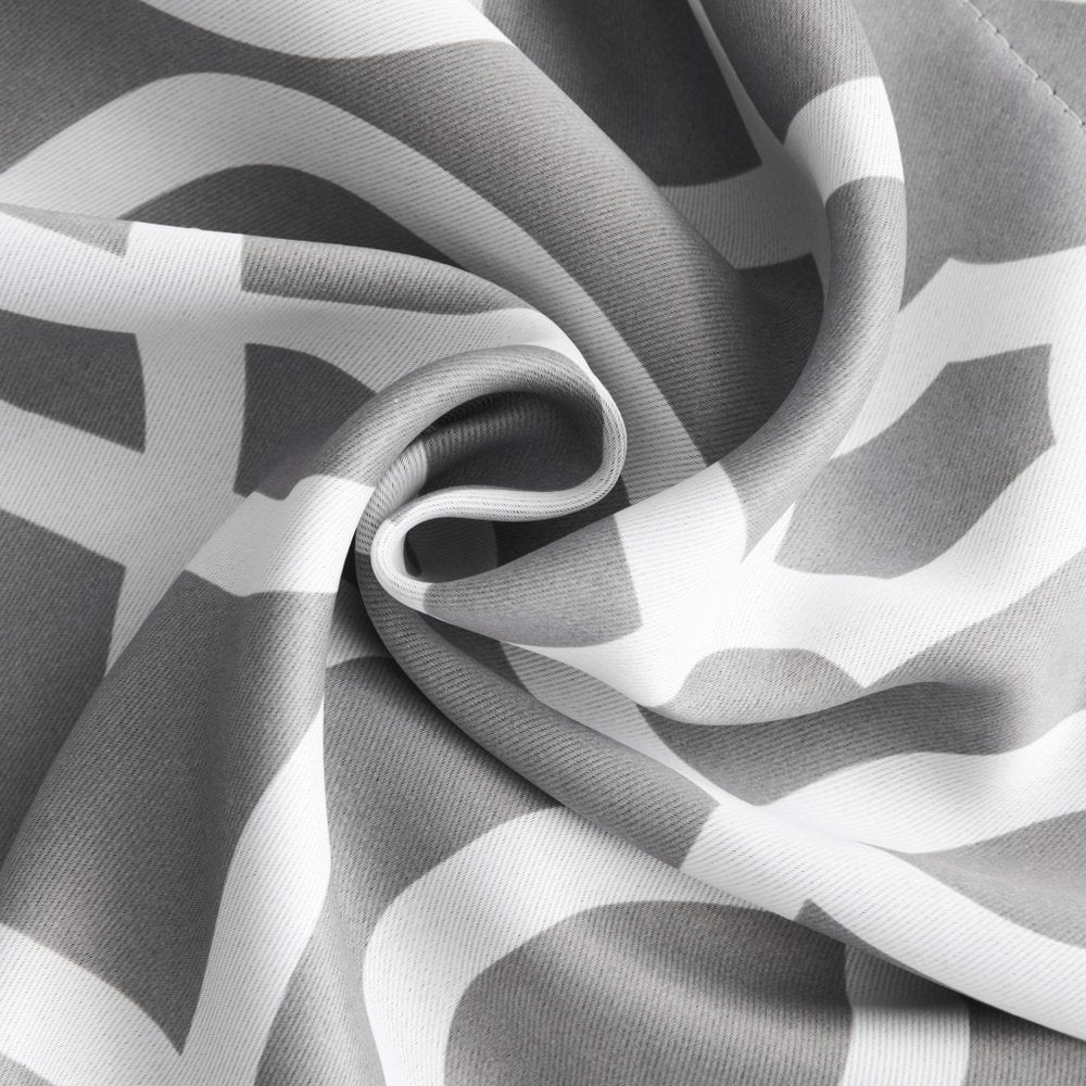 Enhance the ambiance of your living space with our 84-inch gray trellis black out window curtain panel. Crafted from high-quality polyester, this contemporary style curtain features a stunning silver and white color combination that effortlessly complements any decor. The blackout light filtration ensures privacy and creates a cozy atmosphere, perfect for bedrooms or home theaters. Measuring 54 inches in width, this single panel effortlessly covers your window, while the 84-inch length adds an elegant touch. With its chic trellis design, this curtain panel is a stylish addition to any room. Transform your home with this exquisite window treatment and enjoy the perfect balance of style and functionality. 84-inch H x 54-inch W x 1-inch D