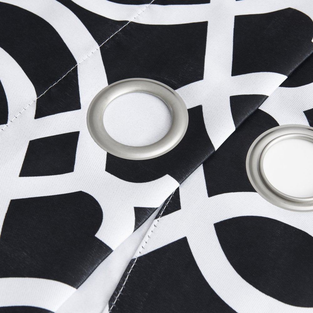 Bring elegance and functionality to your window with our 84-inch jet black trellis black out window curtain panel. Crafted from high-quality polyester, this contemporary style curtain offers blackout light filtration, ensuring a peaceful environment in your home. With a single panel width of 54 inches and a panel length of 84 inches, it provides ample coverage. The striking black and white trellis pattern effortlessly complements any interior decor, adding a touch of sophistication. Perfect for bedrooms, living rooms, or home offices, this curtain panel enhances privacy and blocks out unwanted light. Transform your space with this stunning addition that combines style and practicality seamlessly. 84-inch H x 54-inch W x 1-inch D