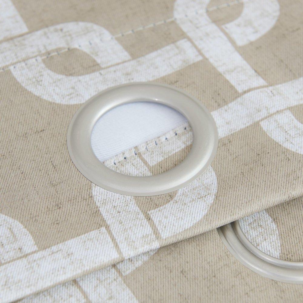 The 84” sand interlock pattern window curtain panel is an exquisite addition to any home decor. Crafted from high-quality polyester material, this contemporary curtain panel offers both style and functionality. The sand color complements any room's aesthetic, creating a warm and inviting atmosphere. With its blackout light filtration, it ensures optimal privacy and blocks out excess sunlight. Measuring 54 inches in width and 84 inches in length, this single panel provides ample coverage for your windows. Its interlock pattern adds a touch of elegance to your space, making it perfect for bedrooms, living rooms, or any other area in need of a stunning window treatment. Upgrade your home with this versatile curtain panel and enjoy its beauty for years to come. 84-inch H x 54-inch W x 1-inch D
