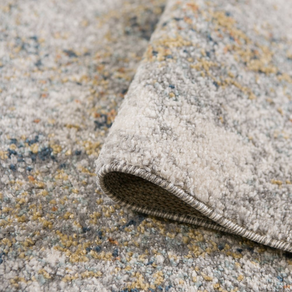 Set an inviting tone in your space with this 9-foot x 12-foot ivory blue and yellow abstract area rug. Built to last, this rug crafted from polyester fibers is known for its durability and long lasting appeal. Rugs are a great way to showcase your style, hide imperfections, warm your home and reduce noise. This larger sized, modern styled rug is ready to create a focal point or statement piece in your room. 108-inch h x 156-inch w x 0.4-inch d.