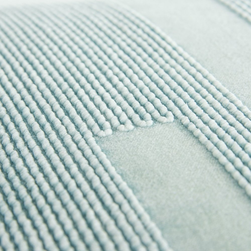 Lend a sense of freshness in the atmosphere with this visually soothing Aqua Blue Dimensional Pattern Play Throw Pillow in your living room. The subtle aqua blue base is heightened by the tasteful geometric pattern play to add dimension and texture to the piece for visual interest. Swirls of cotton cords are applied on a soft cotton velvet base, creating a dimensional pattern play with visual fluidity. The pillow is poly-filled to ensure a soft feel and fluffy look, making it an ideal accent piece for class and comfort. The solid cotton back comes with a hidden zipper closure for convenience while the knife edging gives the pillow crisp and polished corners. If you want to evoke a serene vibe into your living room without compromising modern aesthetics, go for this decorative throw pillow without a second thought. 20” x 20” x 6.25”