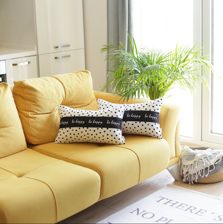 The 12-inch x 20-inch black and white lumbar be happy polka dot throw pillow cover is the perfect decorative accessory for your home. The black and white coloring of the extremely durable and long lasting polyester pillow cover will add dimension and texture to your space. Decorative pillow covers are a great way to change up the look and feel of your space easily and quickly. Combine with your own fill or insert to add decoration and dimension to your favorite chair, accent your sofa, or to use as part of your bed ensemble. 12.00-inch h x 20.00-inch w x 1.00-inch d.