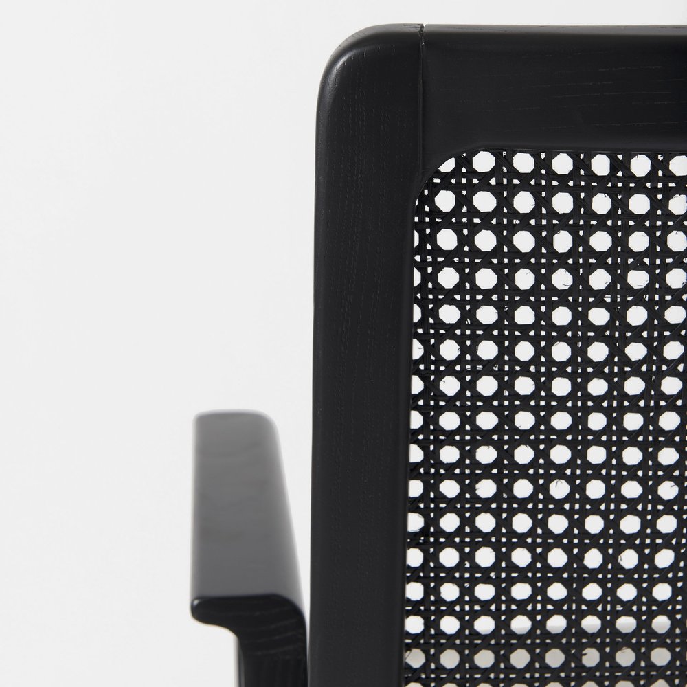 Cream And Black Upholstered Fabric Dining Arm Chair
