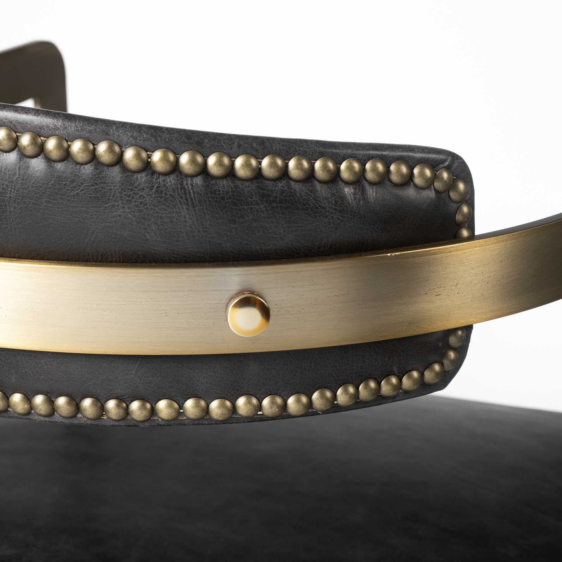Black and Gold Upholstered Leather Open Back Dining Arm Chair
