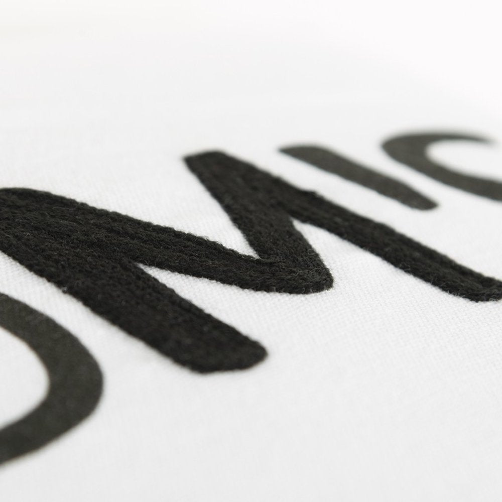 Representing a wonderful sentiment in a monochrome color palette, this Black and White Moms Favorite Modern Throw Pillow will be a lovely addition to any interior décor. The crisp white base flaunts the words ‘Mom’s favorite’ in an eye-catching black font to express a warm emotion of being mom’s favorite. The embroidered accents on the lettering add dimension and texture to the piece while the contrast black welting in yarn looped bubble woven lace adds a playful charm to the piece. The pillow is constructed from cotton duck fabric with a polyfill insert to ensure durability and softness with a fluffy look. The back of the pillow features the same cotton fabric with a hidden-button closure for easy filling and cleaning. Display this pleasant piece of décor in your modern home to combine style, sophistication, and sentiment all in one. 20” x 20” x 6.25”