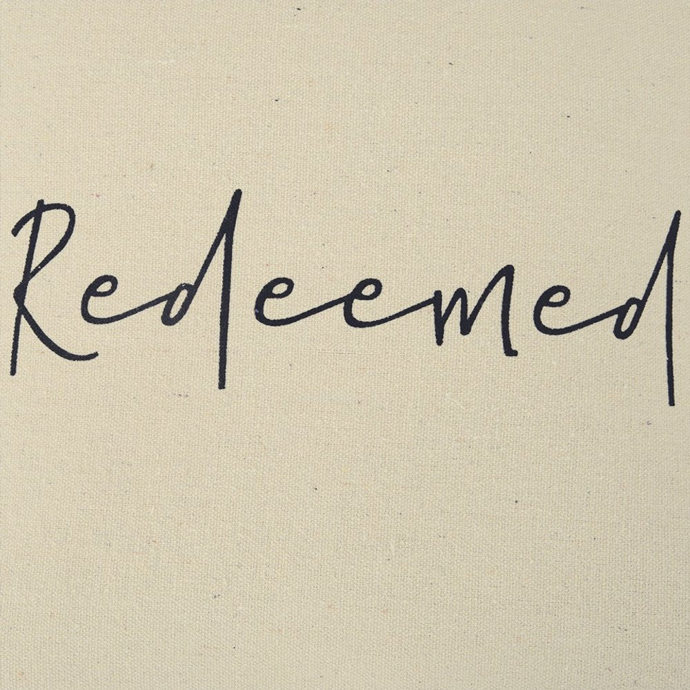 Flaunting a spiritual sentiment in a modern font, this Black Taupe Canvas Redeemed Throw Pillow features a simple yet stylish look to spruce up your living space. The word ‘Redeemed’ is written in black over a taupe base which gives the pillow a modern edge while accentuating a sense of achieving salvation in its sentimental text. Made from recycled cotton canvas with a lightly textured surface for a luxurious feel on the touch, while the knife edging gives a modern appeal to the pillow. The pillow features a solid matching back with a hidden zipper closure for convenience. The classic color palette and simple design of this decorative pillow make it an ideal fit for modern or contemporary homes. 20” x 20” x 6.25”