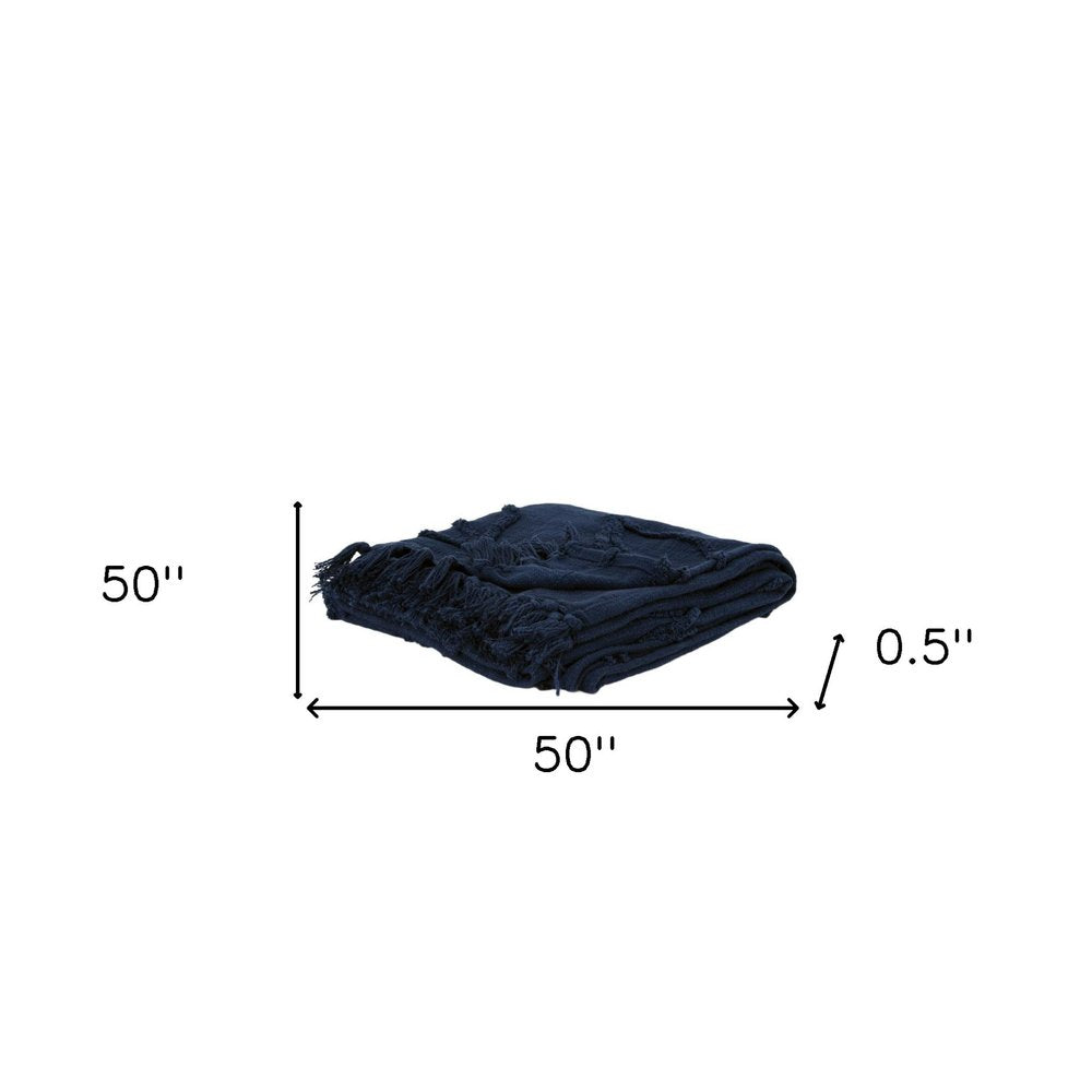 This 50-inch x 50-inch blue floral cotton woven throw blanket with fringe brings a classic, refined style to your space. Features a woven floral design that offers sumptuous softness and texture that you'll cherish for years to come. Made from cotton this blanket will make a great addition to any room it's added to. 50.00-inch h x 50.00-inch w x 0.50-inch d.