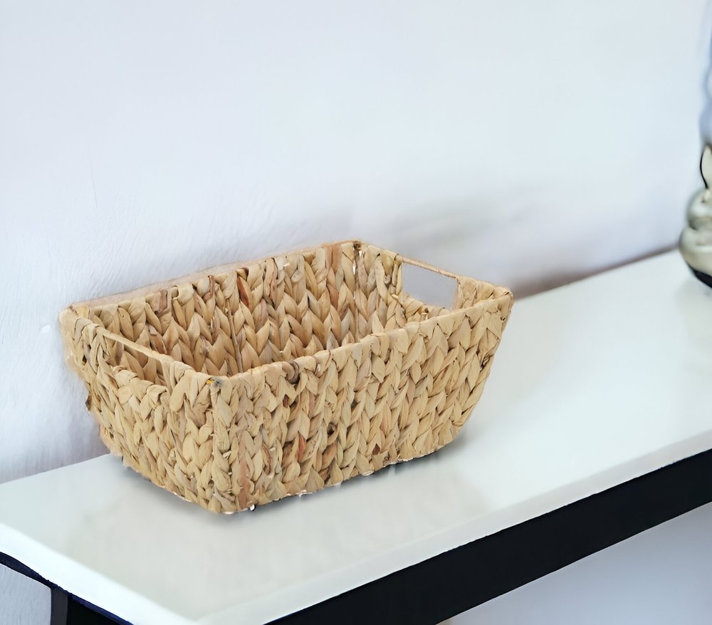 With this Braided Water Hyacinth Storage Basket you can add a touch of natural design and utility to any space in your home. This basket is made from strips of water hyacinth that are braided together in chevron pattern. The tapered rectangular box shape has two handles cut into the sides that make it easier to move it around. You can use this storage basket to organize in your office, your kitchen, or even your wardrobe. You can also use this basket to store blankets and magazines in the living room. 6" H x 14.25" W x 9.5" D