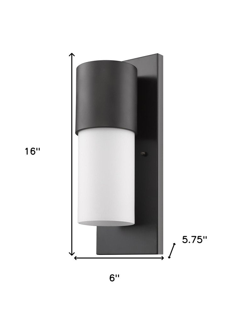 Take the lighting setup of your home to the next level with this Contemporary Antique Bronze and White Wall Light. This wall light features a thin rectangular wall bracket which has clean lines and an antique bronze finish on it. On top of this bracket there is a short cylindrical shape that has the same antique bronze finish. The actual shade is made of white glass and has the same cylindrical shape as the top it is attached to. This wall light will look great indoors or out, and will elevate the look of any space. The light dispersed is ambient yet bright enough. Use it with similar pieces or on its own. 16" H x 6" W x 5.75" D
