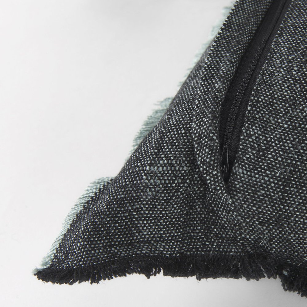 Bring a bit of fashion and zip to your space with this eye-catching and comfy 14-inch x 26-inch aqua and black linen throw pillow cover. This stylish decorative pillow cover is made from high grade fabric that is durable and long lasting and features a textural heathered weave design with fringe around the edges. Decorative pillow covers are a great way to change up the look and feel of your space easily and quickly. Combine with your own fill or insert to add decoration and dimension to your favorite chair, accent your sofa, or to use as part of your bed ensemble. 14.00-inch h x 26.00-inch w x 1.00-inch d.