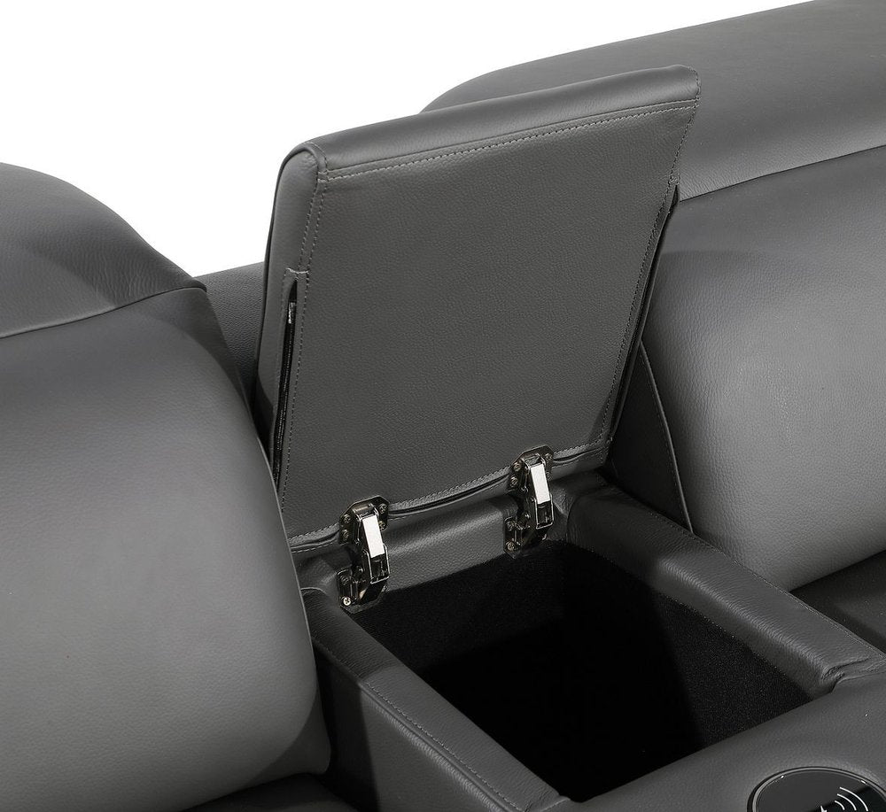 Dark Gray Italian Leather Power Reclining L Shaped Five Piece Corner Sectional