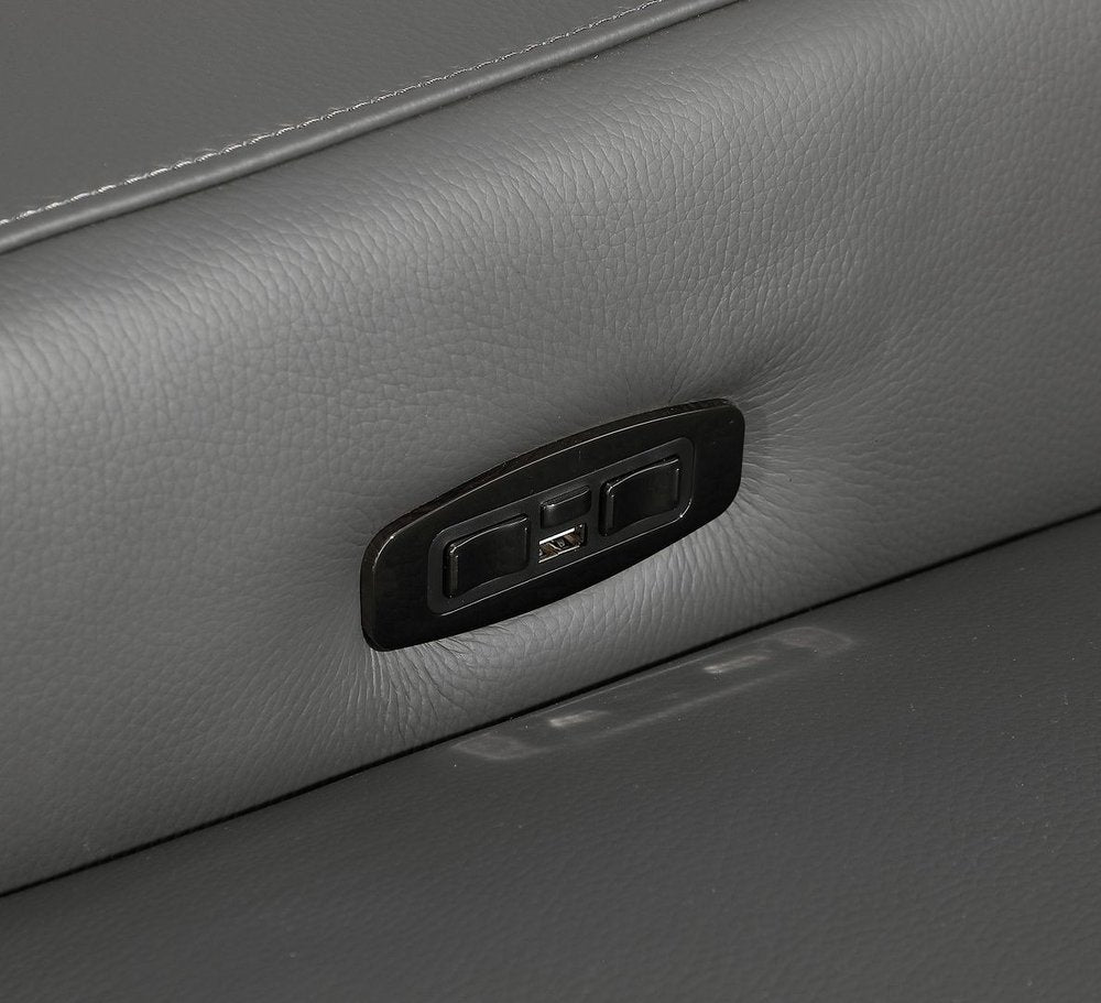 Superior construction from fabulously soft and high-grade leather gives this dark gray italian leather power reclining l shaped five piece corner sectional a leg up on the competition. The premium leather used makes your lounging luxuriously comfortable and adds an elegant appeal to your space. Solid colors give you lots of decorative options and are easy to work into your decor scheme. Round arms offer a comfy place to rest. For the ultimate in relaxation, this sectional includes power - push button recline that turns it into a comfy lounge for sleeping or resting. Black metal legs effortlessly elevate the room and add a touch of contemporary design. Great for everyday lounging and for entertaining, sectionals are an ideal way to seat multiple people. 39-inch H x 112-inch W x 112-inch D