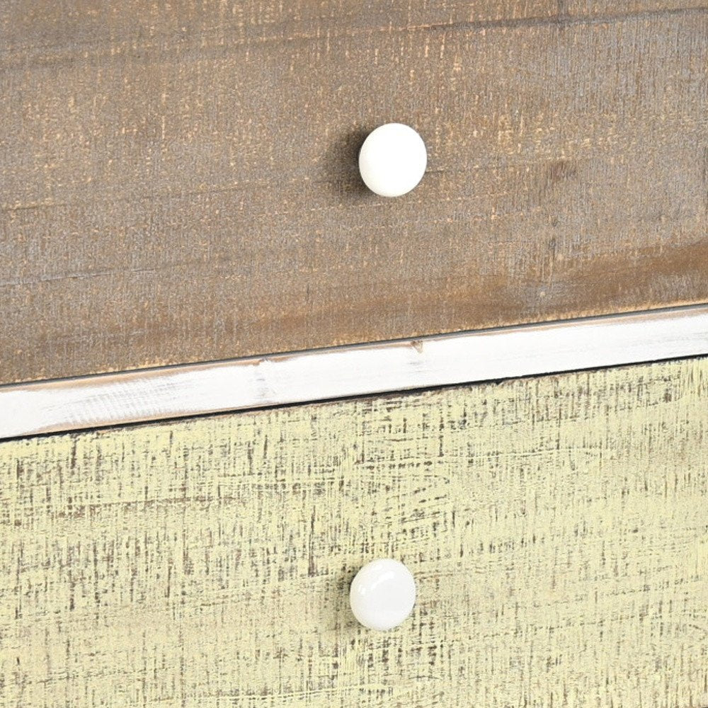 Dress up your dining room, living room, bedroom, or hallway with this gorgeous 19-inch white gray and natural distressed accent cabinet with three drawers. This beautiful accent is built to last from high quality solid wood, in a heavily distressed finish that features white, natural, gray, and even a pop of yellow. Storage vessels don't have to be unsightly. Up the fashion quotient of your room with this hard wearing, versatile, and good looking cabinet. 26-inch h x 19-inch w x 13.7-inch d.