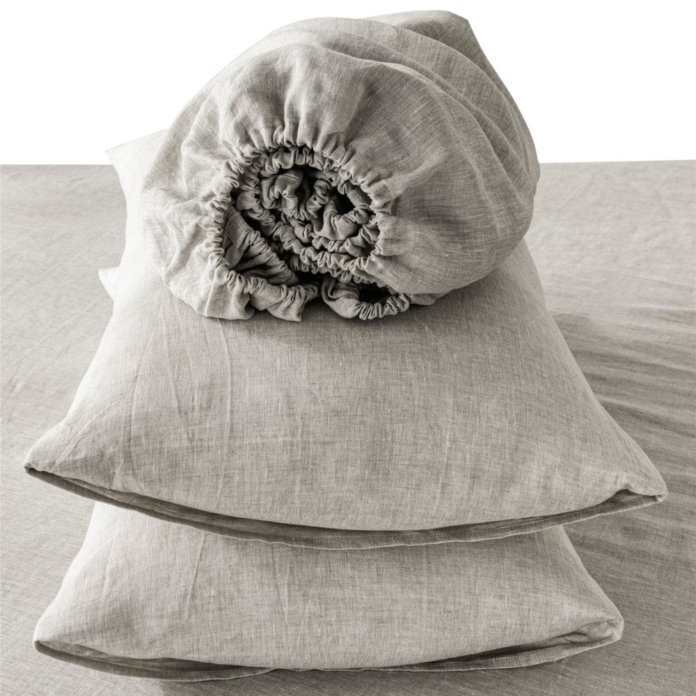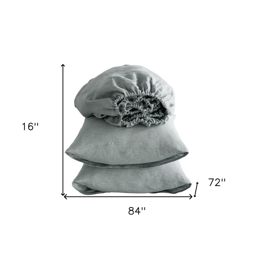 Four Piece Light Gray Linen California King Sheet Set