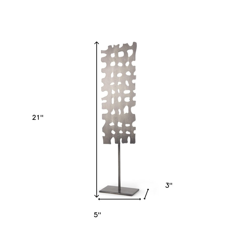 Add an air of fashion to your room and rejuvenate the space with this 21-inch gray metal tabletop sculpture. Crafted with high quality machine-made metal, this contemporary piece beautifully captures the essence of nature. The sleek gray color and modern design make it a perfect addition for those who love an up-to-the-minute look and feel. 21-inch h x 3-inch w x 5-inch d.