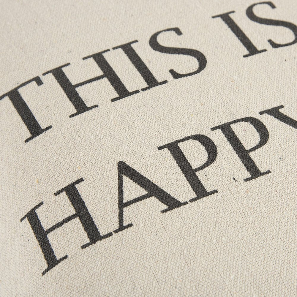 Make your heart feel at peace and happy with the addition of this Gray Taupe Canvas Happy Place Throw Pillow in your living room. The beautifully bold modern font stating ‘This Is Our Happy Place’ in a trout gray over a taupe base, the pillow symbolizes your love for your home while giving a modern essence to the piece. The lightly textured cotton fabric gives a cozy feel on the touch while the self-flange edges prevent fraying, making the pillow a suitable accent for a range of interior themes. This poly-filled pillow features a removable cover for easy cleaning. Convey your love for your happy home with the addition of this decorative throw pillow in the room. 20” x 20” x 6.25”