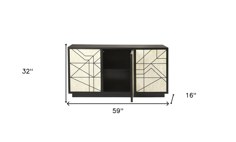 59" Natural and Black Sideboard with Three Doors