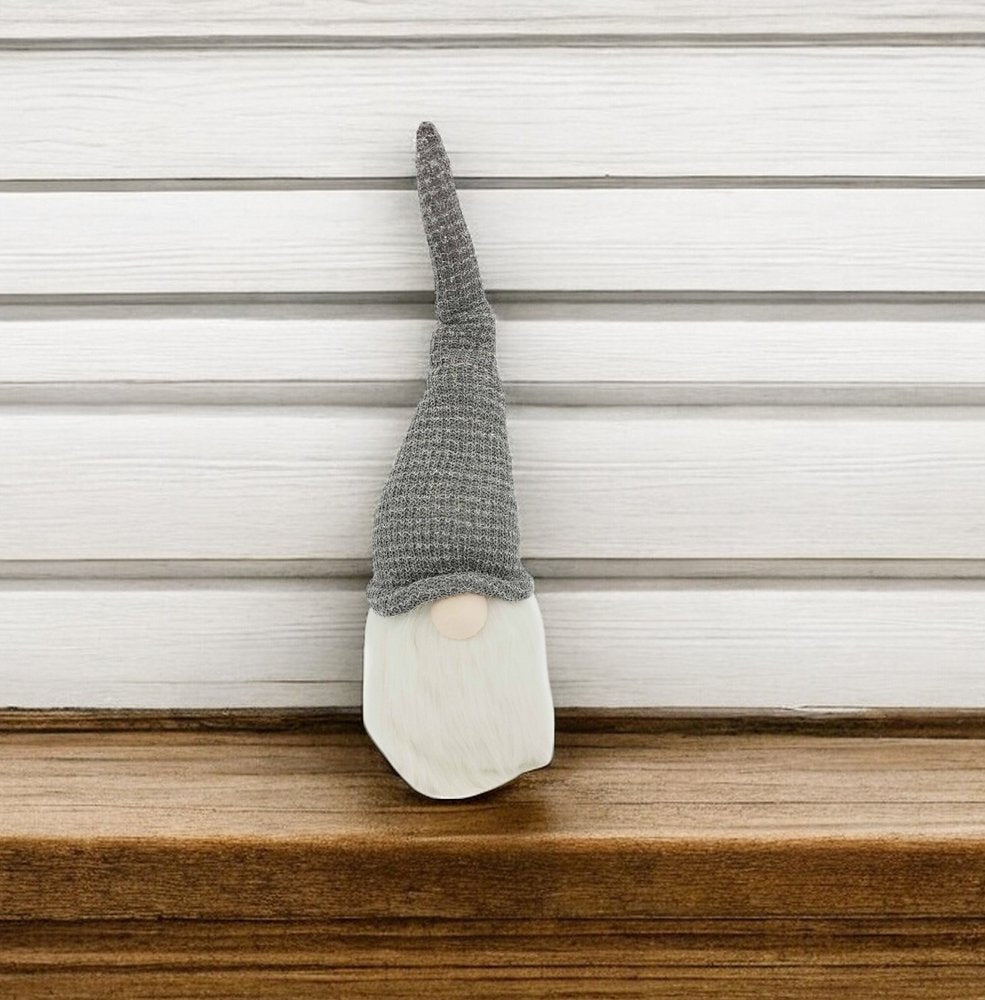 Set a festive christmas mood with this 28-inch gray fabric christmas standing gnome tabletop sculpture. Handmade with high-grade fabric, this contemporary style sculpture adds a touch of fantasy and sci-fi to your holiday decor. The subtle gray color complements any setting, making it versatile for mixing with other decorations. Its standing gnome design brings a whimsical charm to your space, perfect for adding a unique flair to your christmas celebrations. 28-inch h x 7.87-inch w x 7.87-inch d.