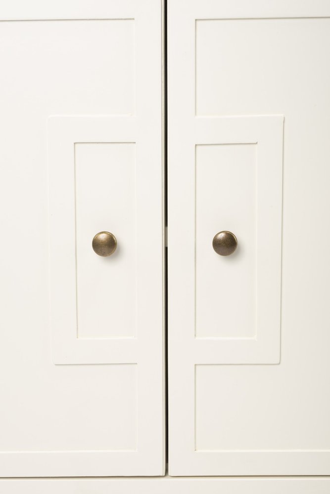 Storage vessels don't have to be unsightly. Increase your storage space and the fashion quotient of your room with this hard-wearing, versatile, and good-looking white solid wood sideboard. Featuring two drawers and shelves for organized storage, this transitional style cabinet also includes doors for easy access to your belongings. Crafted from solid wood, the sideboard exudes timeless elegance and durability, making it a perfect addition to any home decor setting. 30-inch H x 31-inch W x 14-inch D