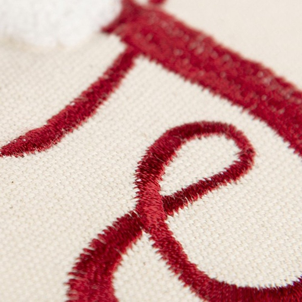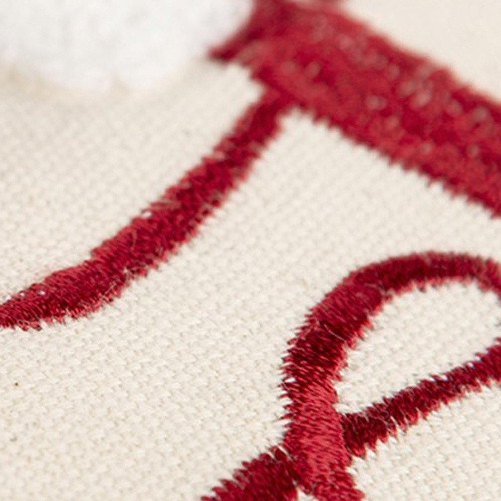 A whimsically holiday vibe is emphasized on this Ivory Red Cheeky Santa Sentiment Throw Pillow in a cheerful color palette that is sure to spruce up your living room in an instant. The soft ivory base flaunts a playfully embroidered hilarious sentiment from Santa in vibrant red and multicolored hues to give the piece cheerful visual appeal while the contrast welting completes the look with a modern flair. The hand-tied French knots and machine embroidered accents add texture and dimension to the pillow, making it a one-of-a-kind interior décor to induce positive energy in the room. Crafted from high-quality cotton fabric to make the pillow long-lasting and soft on the touch while the polyfill insert adds to the fluffy appearance. The solid coordinating back bears a hidden zipper closure for ease of cleaning. The stunning colors and quirky sentiment on the pillow make it a perfect pick to enliven your living room. 20” x 20” x 6.25”